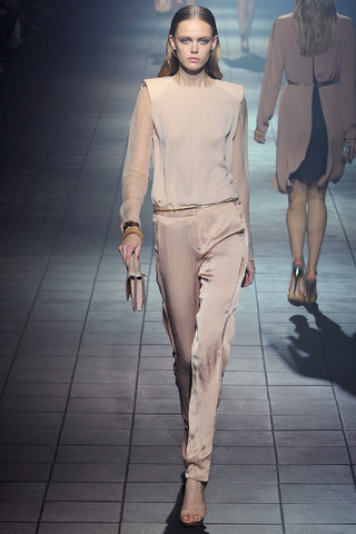 Lanvin se decanta por pantalones de corte más etéreo, consiguiendo un look mucho más sobrio (de ésos con los que puedes ir trendy al trabajo sin que te miren raro...):